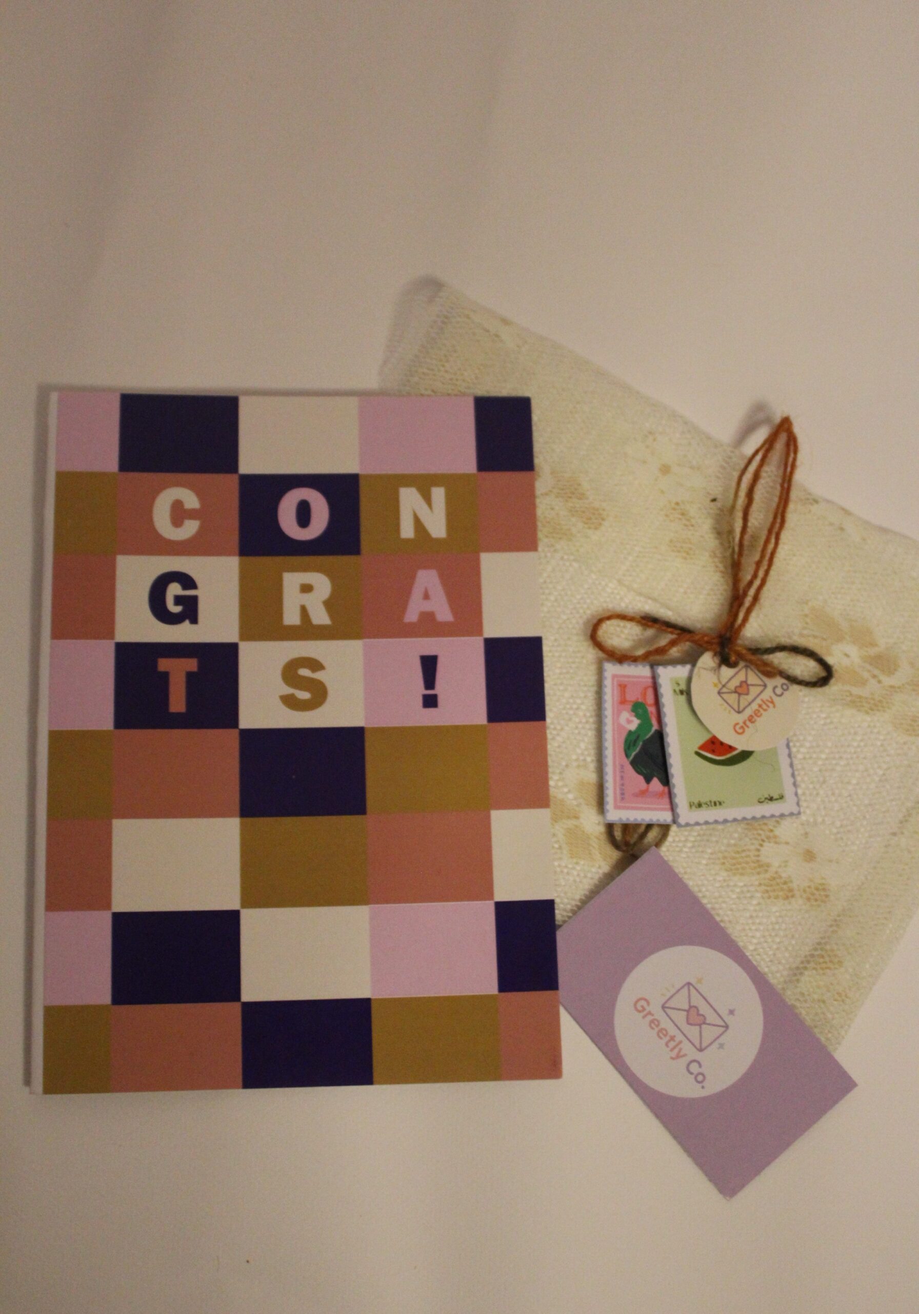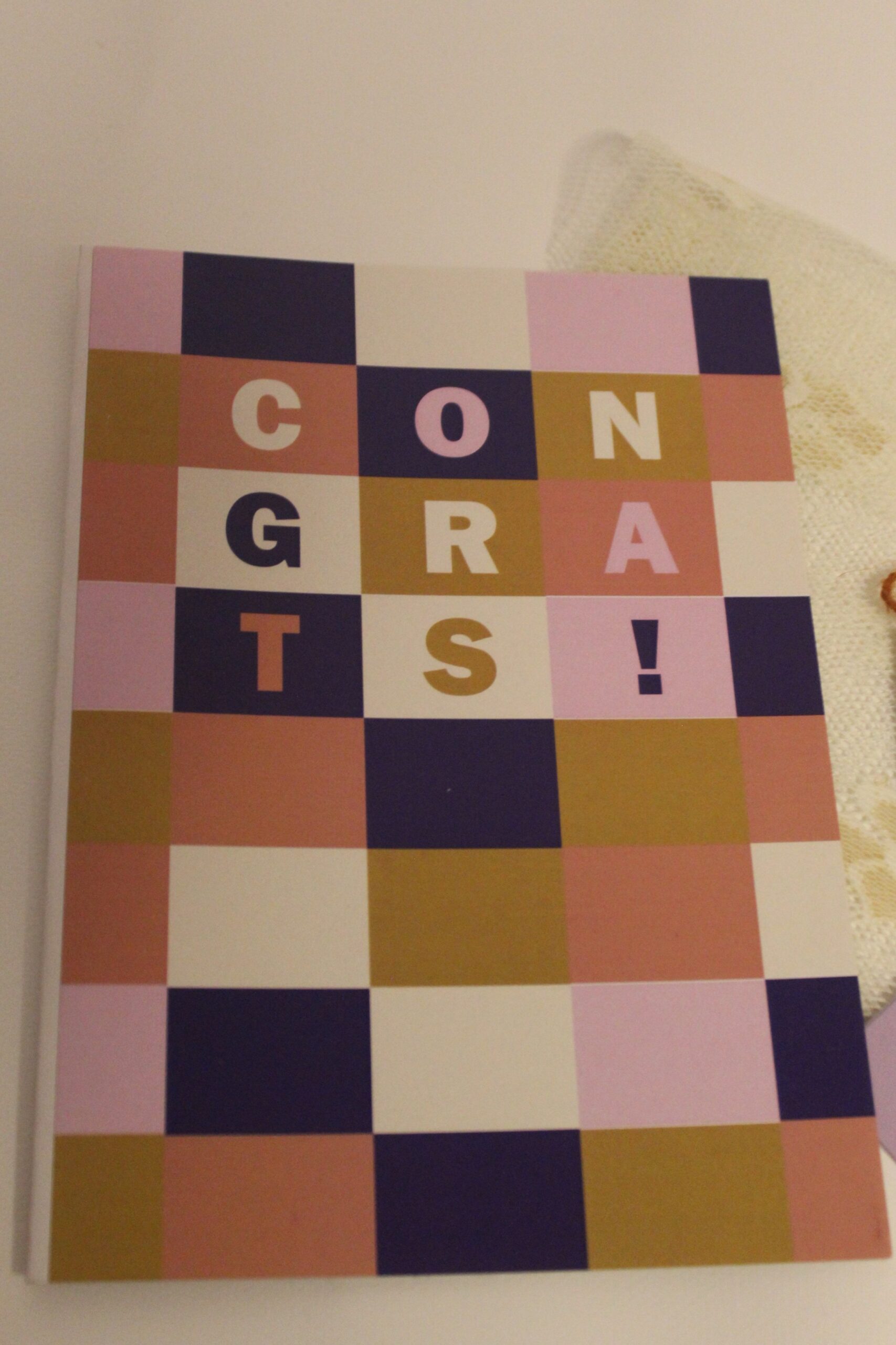 A modern and cheerful congratulations card perfect for celebrating achievements, milestones, and happy moments. Whether it’s a new job, graduation, or personal win, this card helps you say “well done” beautifully. Blank inside for your personal message.